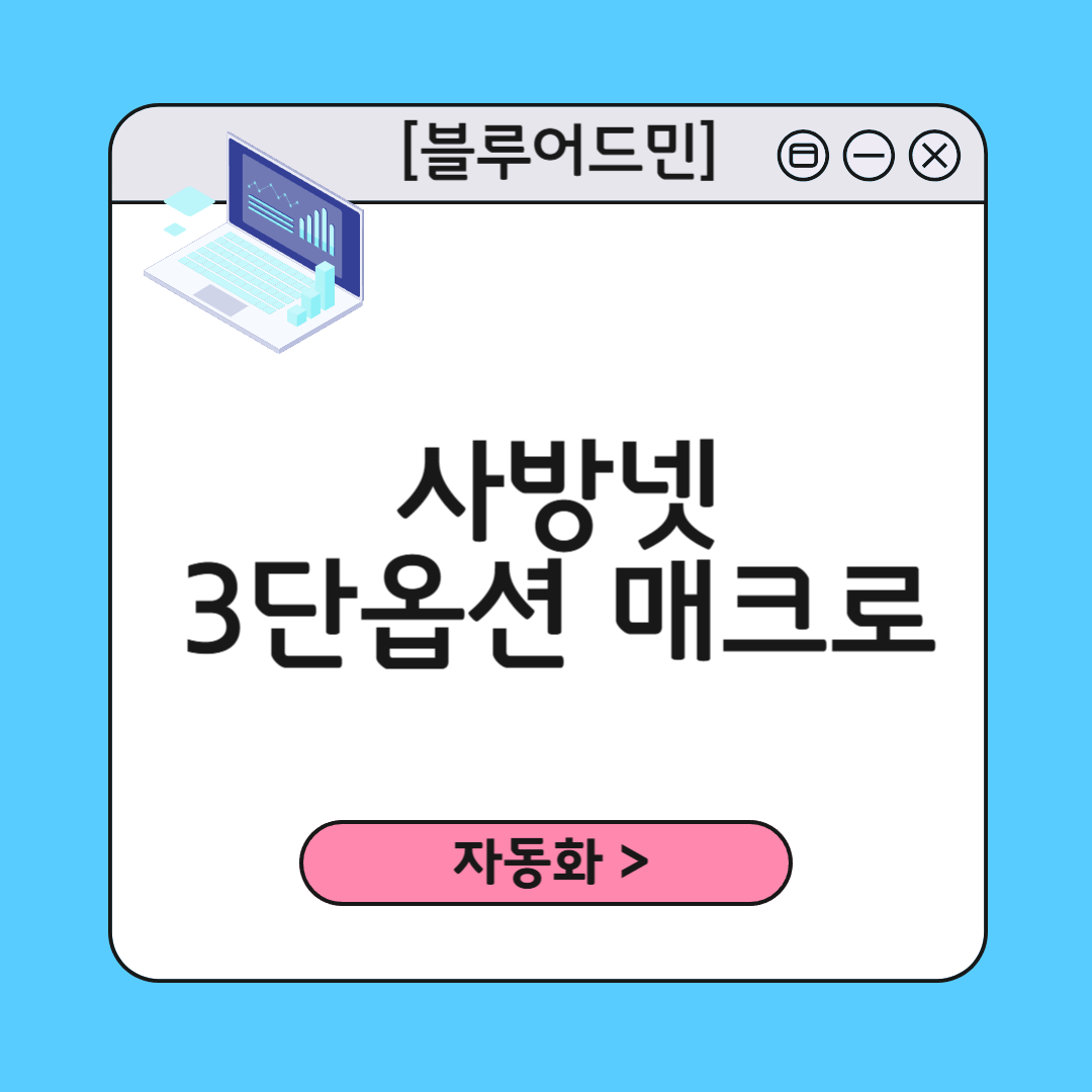 📝 서론쇼핑몰을 운영하다 보면, 반복되는 작업 중에서도상품 옵션 등록만큼 시간과 에너지를 많이 요구하는 작업도 드뭅니다.특히 사방넷을 사용하는 경우,3단 옵션은 수작업으로 등록해야 하기 때문에작업 시간이 오래 걸릴 뿐 아니라,실수로 인해 수정 작업까지 반복되는 경우가 많습니다.그래서 이 문제를 한 번에 해결할 수 있는3단 옵션 자동화 매크로를 준비했습니다.🎬 사용법 영상 (자막+음성 포함)아래 영상에서는 사방넷 양식에 맞춰 3단 옵션을 자동으로 등록하는 과정을 실제 엑셀 화면으로 보여드립니다.마우스 클릭만으로 자동화되는 과정을 직접 확인해보세요.🔗 ▶ 3단 옵션 매크로 사용법 영상 바로보기 💡 이런 분께 추천드립니다스마트스토어, 쿠팡, 11번가 등 다중 쇼핑몰 연동 중이신 분사방넷을 처음 사용하거..
