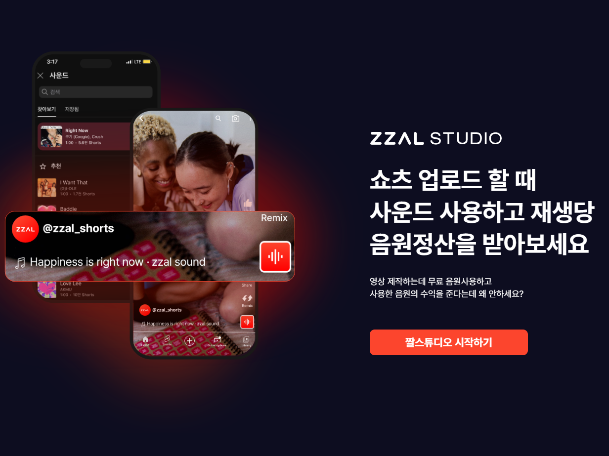 유튜브는 정해진 조건까지 달성하지 못하면 수익을 낼수 없는 구조입니다. 그러나 쇼츠 영상을 업로드할때 사용되는 사운드를 조회수 만큼 정산해주는 (짤스튜디오)를 소개합니다. 저도 현재 3개의 채널 운영중입니다. (부업, 음악, 교육) 그러나 아직 수익 조건이 되지 않기 때문에 별도의 수익은 언제든지 환영입니다. 가입 방법 1. 짤스튜디오 홈페이지 회원가입 https://zzal.studio/partners/dashboard Zzal Studio 안녕하세요 짤스튜디오 입니다. 대시보드에서 확인되는 예상 정산액과 유튜브 월말 수익 조정, 적용 환율등의 이유로 금액의 차이가 있을 수 있습니다. 정산 신청 기간에 [정산관리] 메뉴를 통 zzal.studio 2. 회원 가입후 채널 관리 메뉴 이동 3. 운영중인 채..